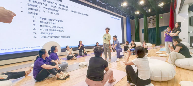 在培训环节,东院产科负责人杨志芬提出康复应贯穿备孕—孕期—产后—围绝经期的全过程管理,倡导将运动康复与健康管理前移,融入“体重管理”行动框架,提出“医生宣教度、患者知晓度、技术专业度、自我训练度”四度模型,助力标准化推广。